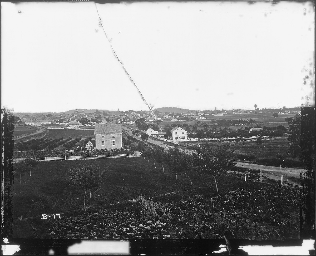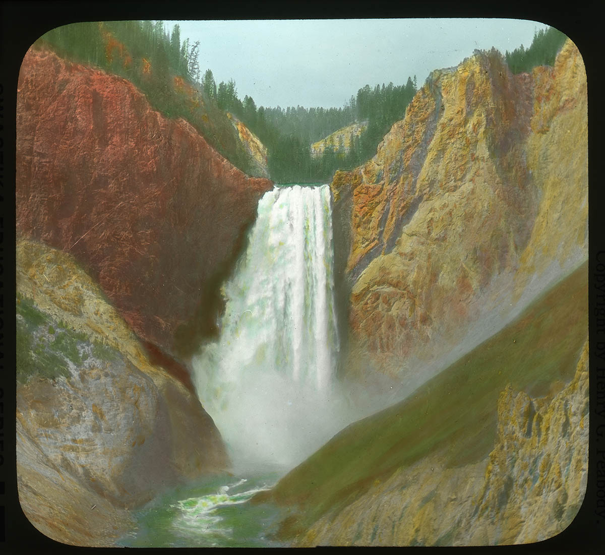 Many of the lantern slides in Still Picture Branch holdings are positive transparencies on glass, but some later versions contain a film transparency sandwiched between two pieces of glass and taped together. Lantern slides were especially popular from the 1880s through the 1920s. The earliest were not photographs but paintings on glass. Lantern slides are more commonly associated with the gelatin dry plate process (there were also collodion lantern slides). The plates were prepared with the silver gelatin emulsion and then exposed to a glass plate negative which resulted in a positive image. Another piece of glass covered the image for protection and the two were joined by tape along the edges.