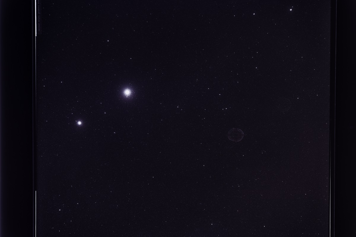 When compared to film, the photographic support that largely supplanted glass as the 20th century progressed, glass is more dimensionally stable; it is not going to bend, curl, shrink, or tear. This is especially true for larger dimensions. One series maintained by the Still Picture Branch, Photographs Relating to Astronomical Surveys, 1969-2010 (Local Identifier: 255-PS, National Archives Identifier: 6016402), demonstrates this reliance on glass as late as the middle of the 20th century. The series includes 14”x14” glass plates, like the one pictured here, used by the Palomar Observatory in California in their first Palomar Observatory Sky Survey conducted during the 1950s.