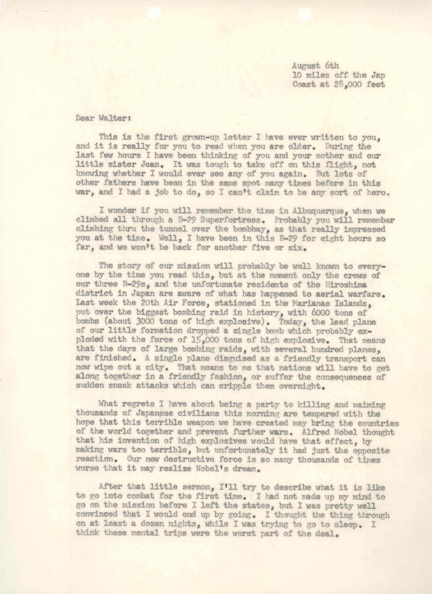 Letter from Luis W. Alvarez to his Son Walter Describing the Bombing of Hiroshima, Japan, August 6, 1945