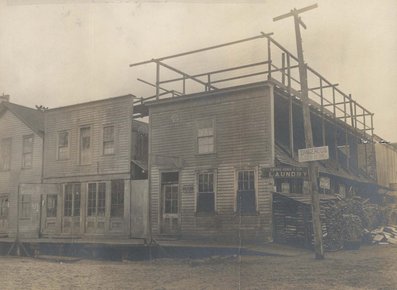 New Years Day 1900 found the people of the Pacific Northwest in the midst of change. Native Americans had been moved onto reservations and their former lands opened to settlement. Two states, Washington and Idaho, finally achieved statehood in 1889 and 1890 respectively. The entire region experienced dramatic increases in population, both through migration from the east and immigration from Europe and Asia. Railroad lines had been completed to the region bringing passengers from the east, but water transportation remained important especially on Puget Sound and the Columbia River. Tensions over immigration from Asia, especially China, had resulted in Congress passing the Chinese Exclusion Act in 1882 which was not repealed until 1943. Records documenting the Bureau of Immigrations attempt to enforce this act included photographs of Chinese businesses such as the Lock Doon store in Olympia, Washington. Crime rates increased with the population growth and larger Federal prisons were needed. Three panoramic photographs document the growth of McNeil Island Federal Prison from 1903 to 1937. The major cities of the region, Seattle, Portland, Spokane, Boise and Tacoma, grew significantly. At the same time, the more arid areas of Eastern Washington and Oregon and Southern Idaho remained sparsely populated. The Newlands Reclamation Act of 1902 provided federal funding for irrigation projects in the West and eventually led to construction of dams on the Columbia and Snake Rivers to provide water for irrigation and electricity. With increased irrigation, additional lands were brought under cultivation and a wider variety of crops was produced. In addition to agriculture, the Pacific Northwest economy remained dependent on resource extraction industries such as logging, mining and fishing.