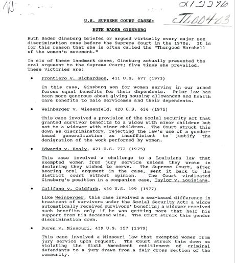 United States Supreme Court Cases and Fact Sheet: Ruth Bader Ginsburg 1993
