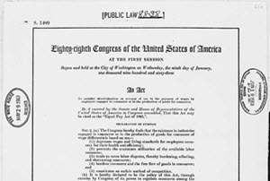 - House Resolution 5056 Prohibiting Discrimination in Pay on Account of Sex. Although not passed by Congress, this bill, introduced by Representative Winifred Stanley, was the first to propose that employers be required to pay women equal pay for equal work. This principle was later enacted in the Equal Pay Act of 1963.